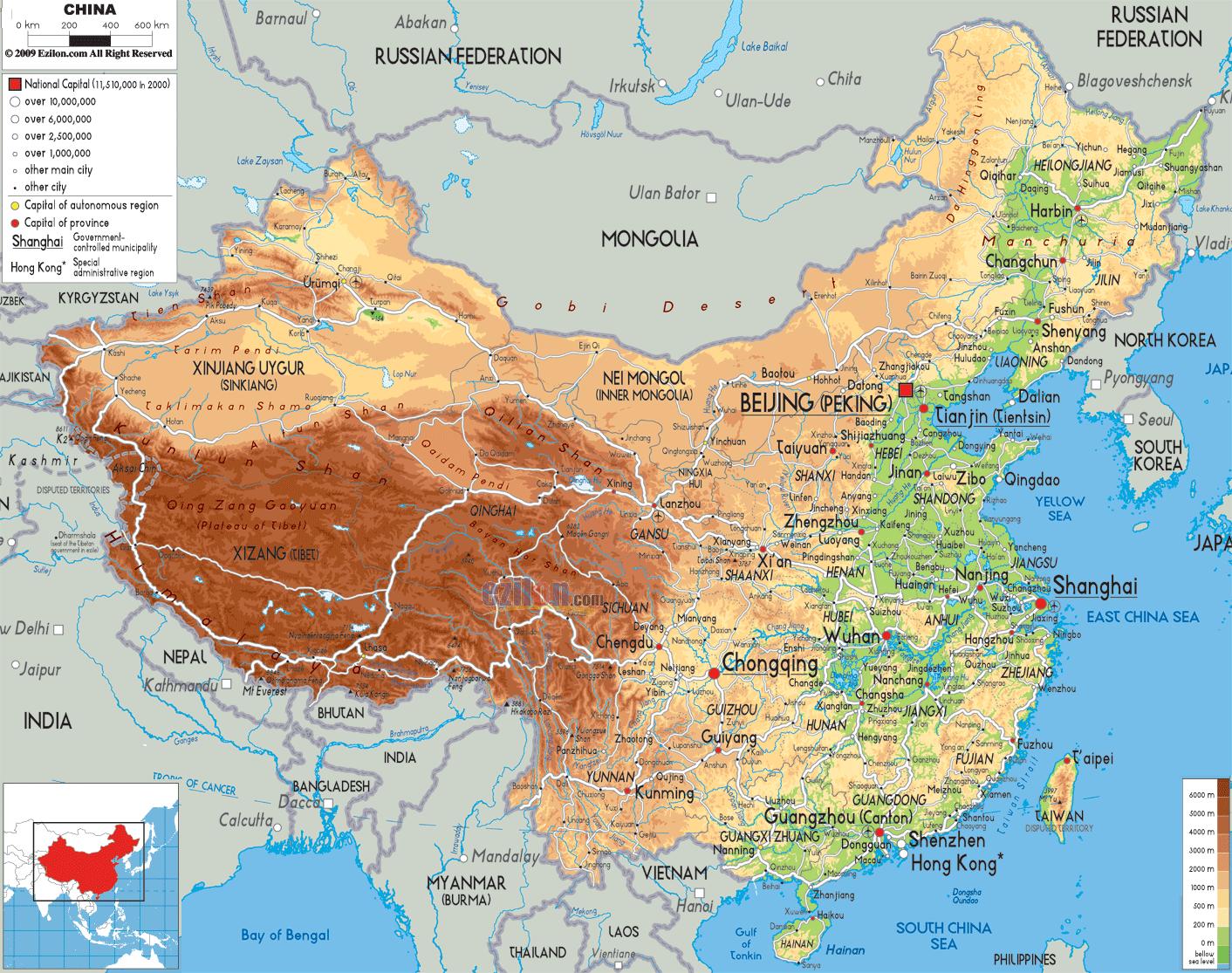 Kitajska na zemljevidu. Brado zemljevid (Vzhodna Azija - Azija) za tiskanje. Brado zemljevid (Vzhodni Aziji in Azije), da prenesete.